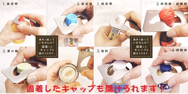 【超便利!】固着してしまったキャップ(口径33mmまでの接着剤キャップ、料理酒・糖類系酒類のキャップ、研磨剤や塗料キャップなど各種)は通常とても開けにくいですが本品なら、「てこの応用力」により簡単に開栓できます。車用のワックス缶蓋や菓子のドロップス缶蓋などこじ開けるタイプの蓋にも本品の強靭なステンレス製なら便利に開栓できます。使い方は工夫次!当メーカーの動画サイトで各種キャップ開栓方法がご覧になれます。